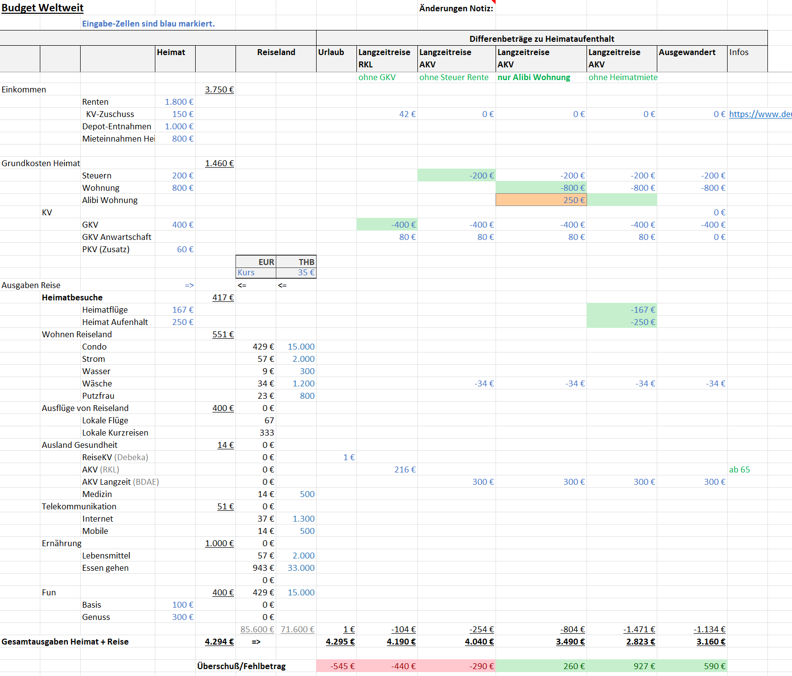 Habe als Beispiel mal Thailand als Reiseland angenommen, um auch eine mögliche Behandlung von Fremdwährungen aufzuzeigen.