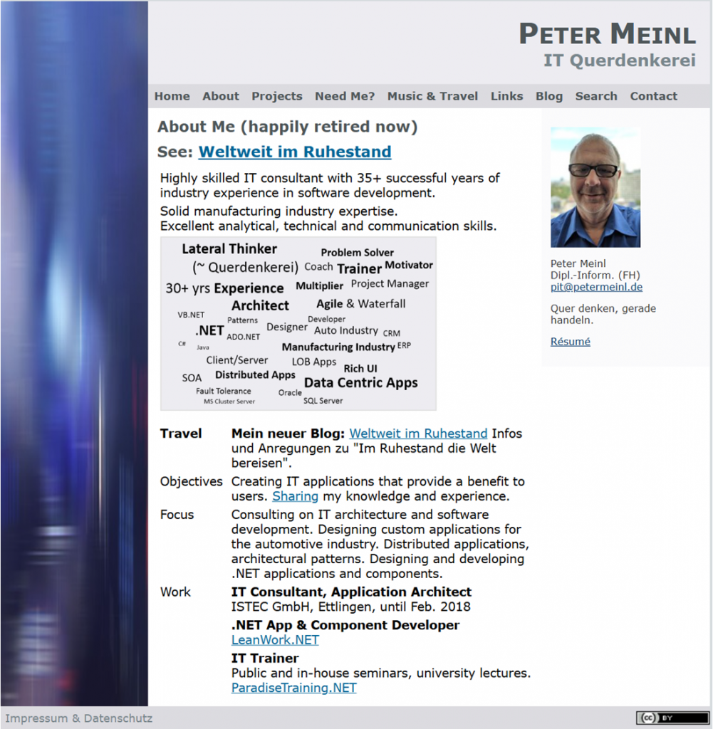 PeterMeinl.de [archiviert] = Persönliche Homepage vor meinem Ruhestand: