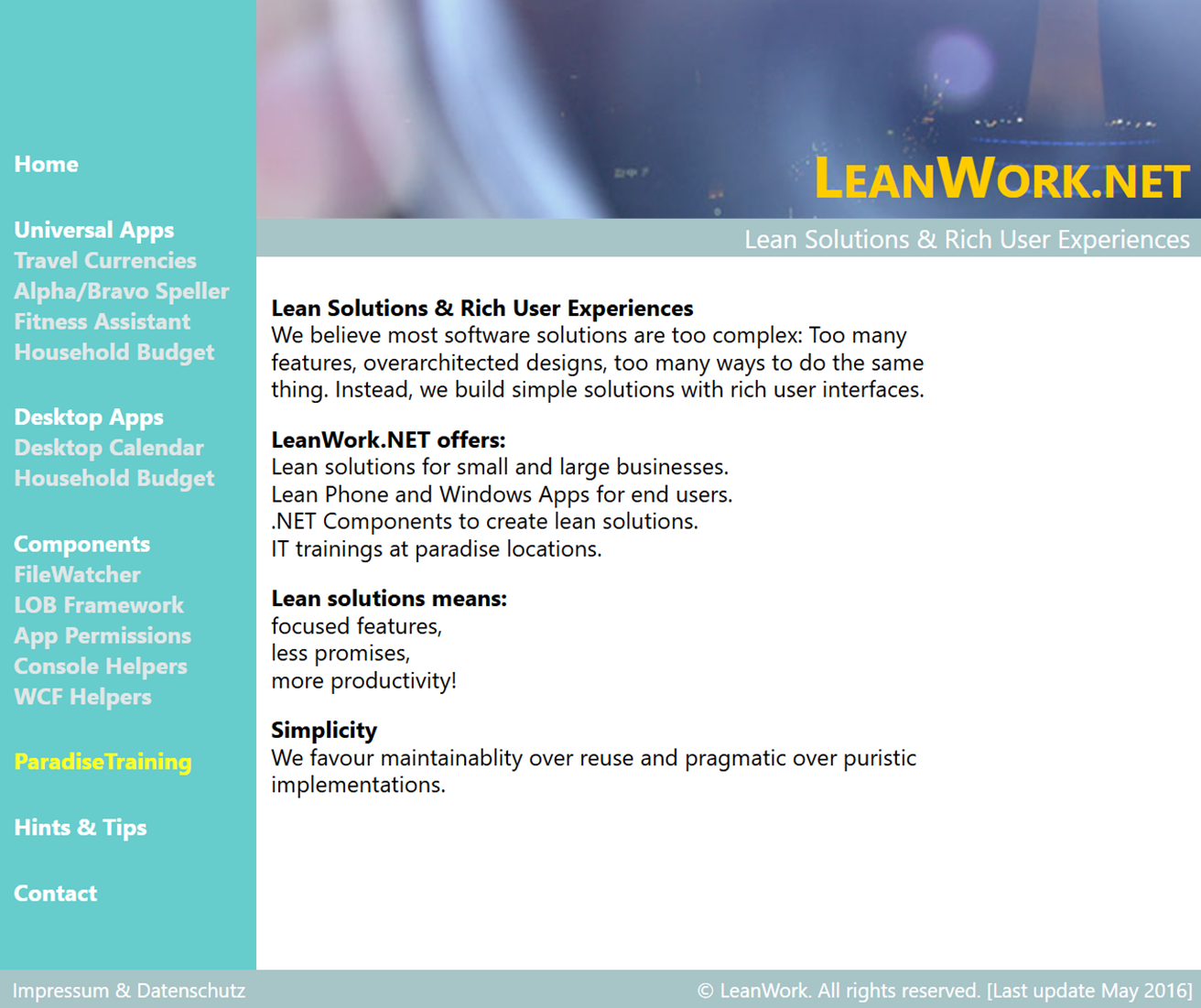 LeanWork.NET [archiviert] = Firmen-Homepage vor meinem Ruhestand: