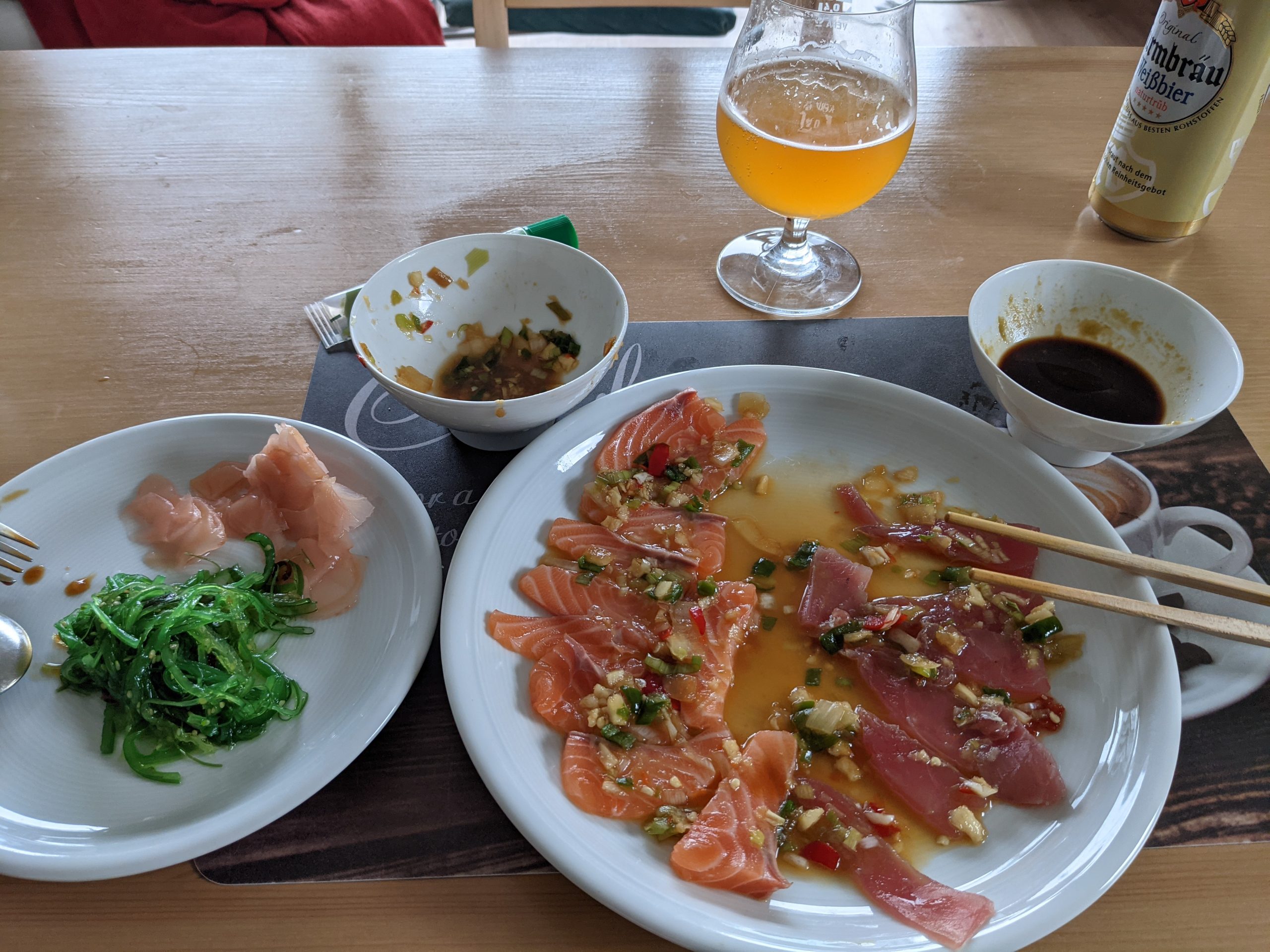 I verwende TK Fisch aus dem Supermarkt. In Deutschland darf Fisch zum roh essen (Sushi Qualität) nur verkauft werden, wenn er einmal tiefgefroren war (gegen Nematoden) – ist also auch Tiefkühlkost, halt aufgetaut in der Theke.