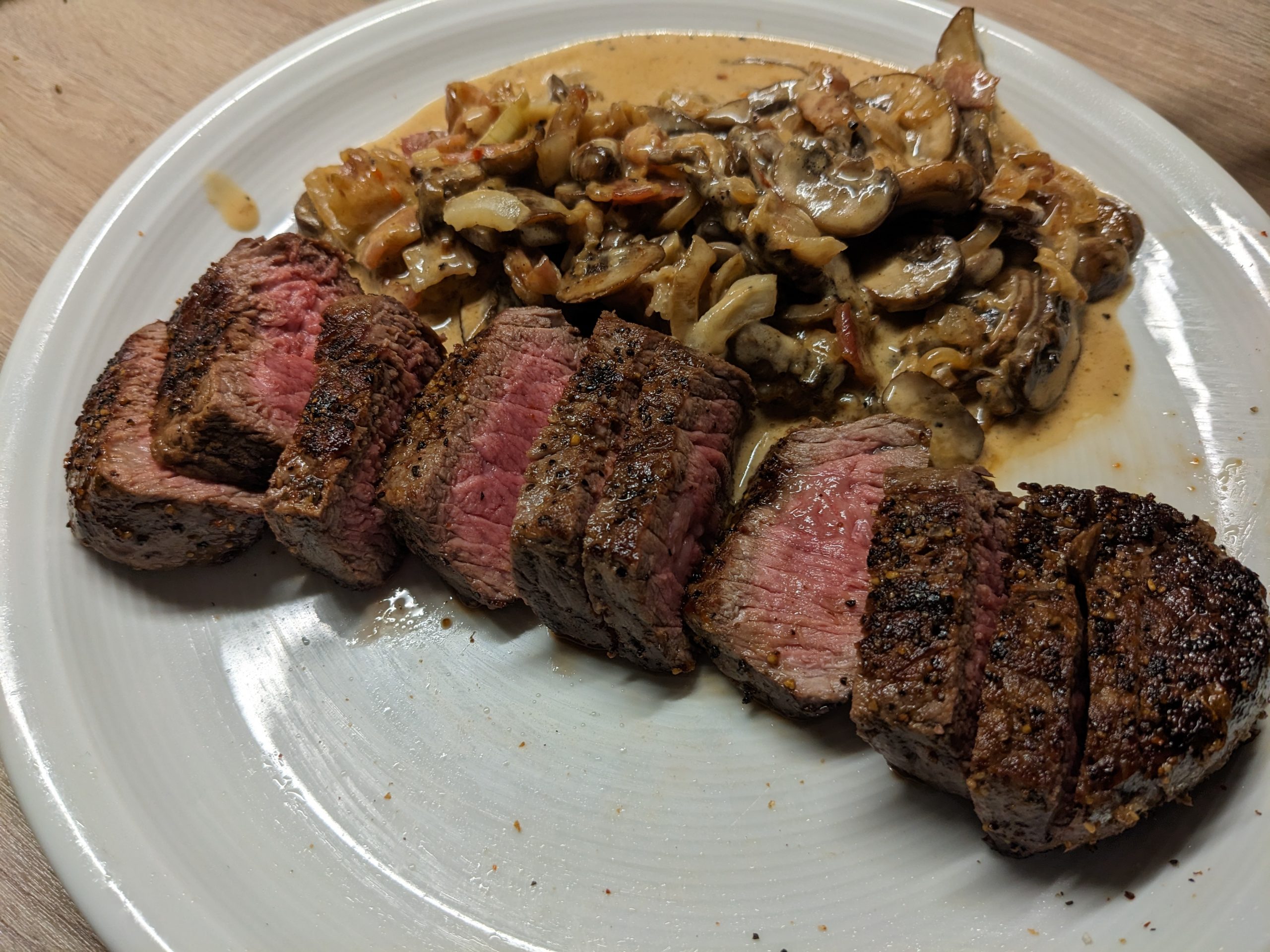 Sosse je nach Wunsch nachwürzen, eindicken oder durch Sieb passieren. Ich lasse sie gerne einfach so grob wie sie ist. Manchmal rühre ich noch Champignons mit Speck drunter – in separater Pfanne zubereiten, die Pilze brauchen ganz schön lange bis das Wasser raus ist und sie richtig gut schmecken!