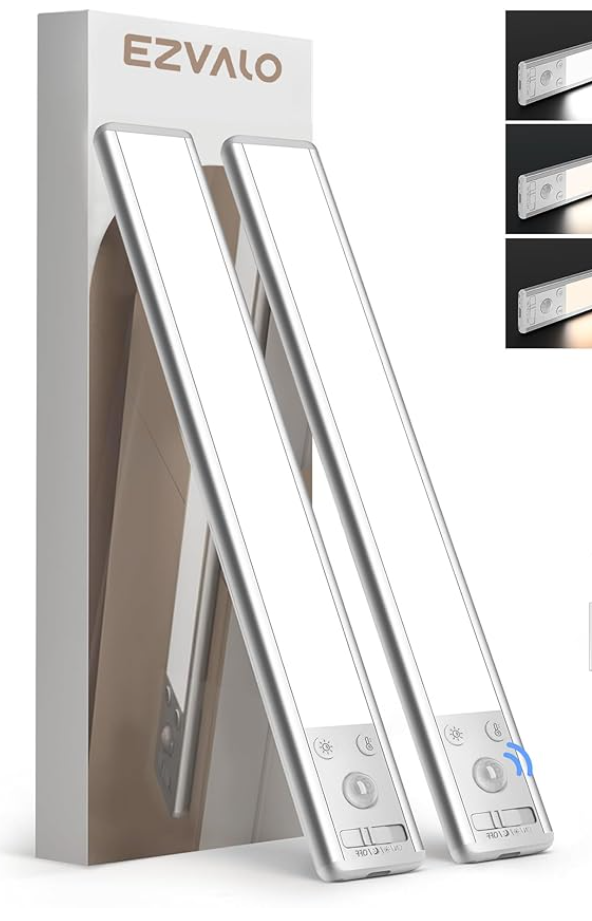 Unterbauleuchten (*)mit Bewegungsmelder, Akku. Werden von Magentaufklebern gehalten. Sehr preisgünstig!